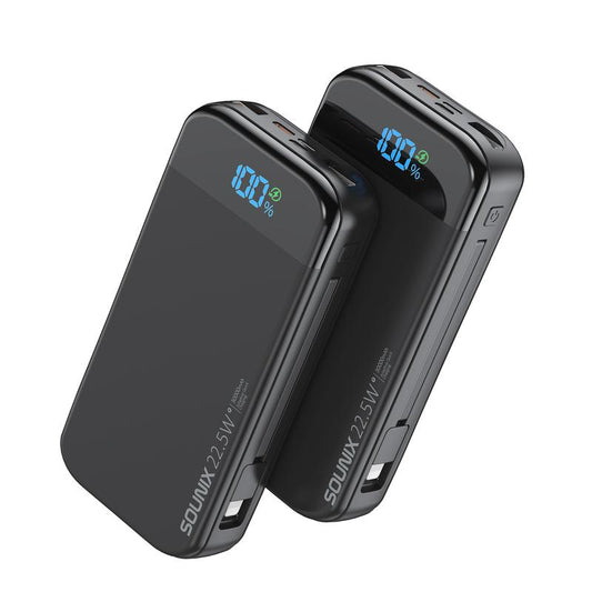 32000Mah Portable Charger with Built-In Cables, 22.5W Super Fast Charging Power Bank, Dual USB Output, 5 Outputs & 3 Inputs, 5 Outputs LCD Display Travel Battery Pack Compatible with Iphone, Samsung All Cell Phones